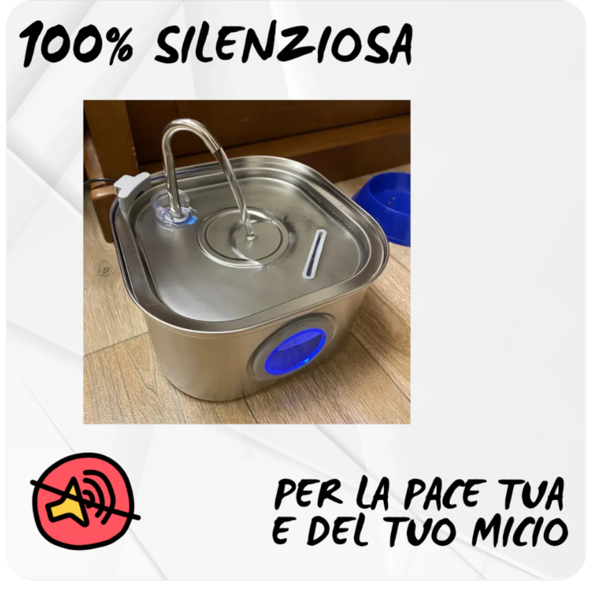 Si, la fontanella si collega alla corrente tramite un cavo USB/adattatore. A basso consumo energetico e silenziosa.